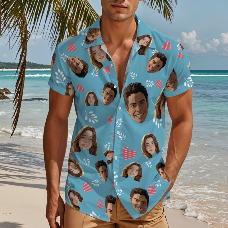 Imprimez votre visage sur une véritable chemise hawaïenne à imprimé intégral pour homme. Encouragez-vous ou montrez votre amour et votre soutien à l'être aimé avec cette idée géniale. Le meilleur cadeau personnalisé pour votre amoureux, votre famille, vos amis et pour diverses fêtes.