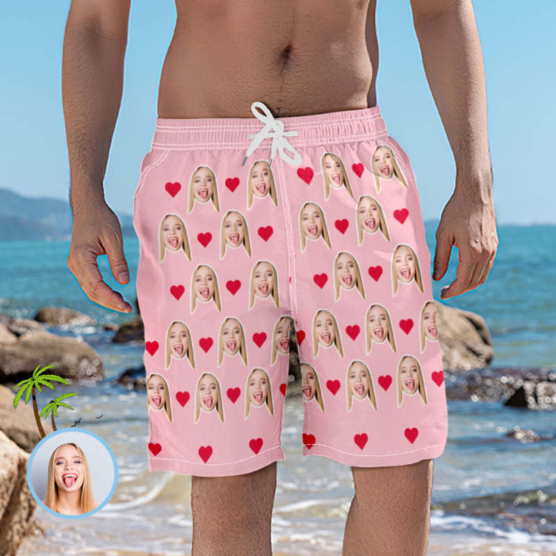 Pantalon Photo Court De Plage Élastique Avec Visage De Cœur Personnalisé Pour Hommes