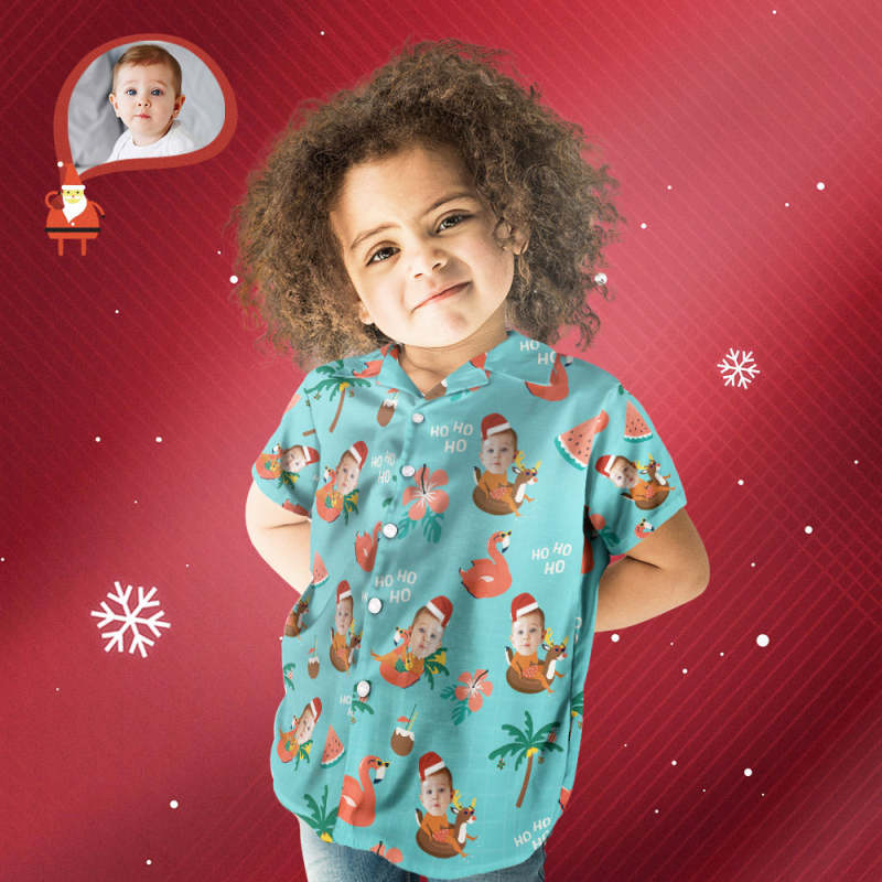 Chemise PersonnaliséeVisage Personnalisé Christmas Pool Party Chemise Hawaïenne Cadeau De Noël Personnalisé Pour Enfants