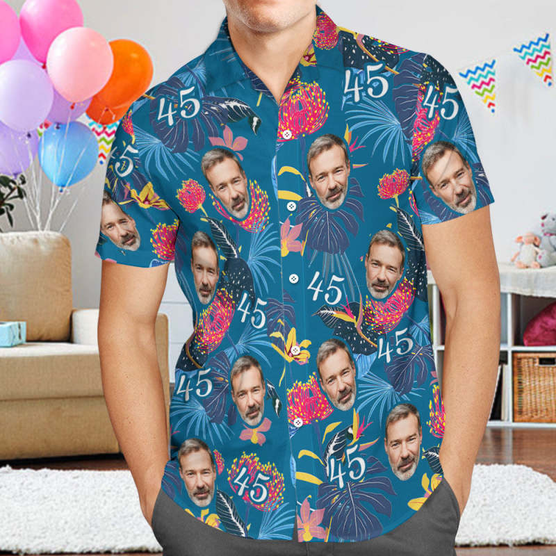 Accueil / Chemise PersonnaliséeChemise Hawaïenne Avec Visage Personnalisé, Numéro De Cadeau D'anniversaire Pour La Fête Des Pères Et Visage, Chemise Hawaïenne Pour Papa