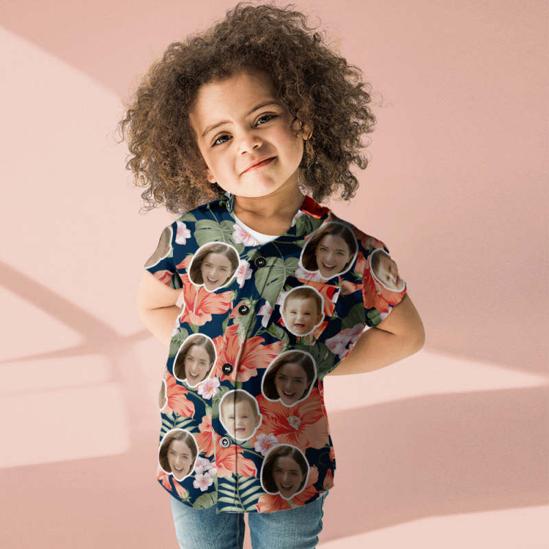 Accueil / Chemise PersonnaliséeChemise à visage personnalisé Chemises hawaïennes pour femmes et enfants Fleurs d'Aloha Cadeau pour la fête des mères