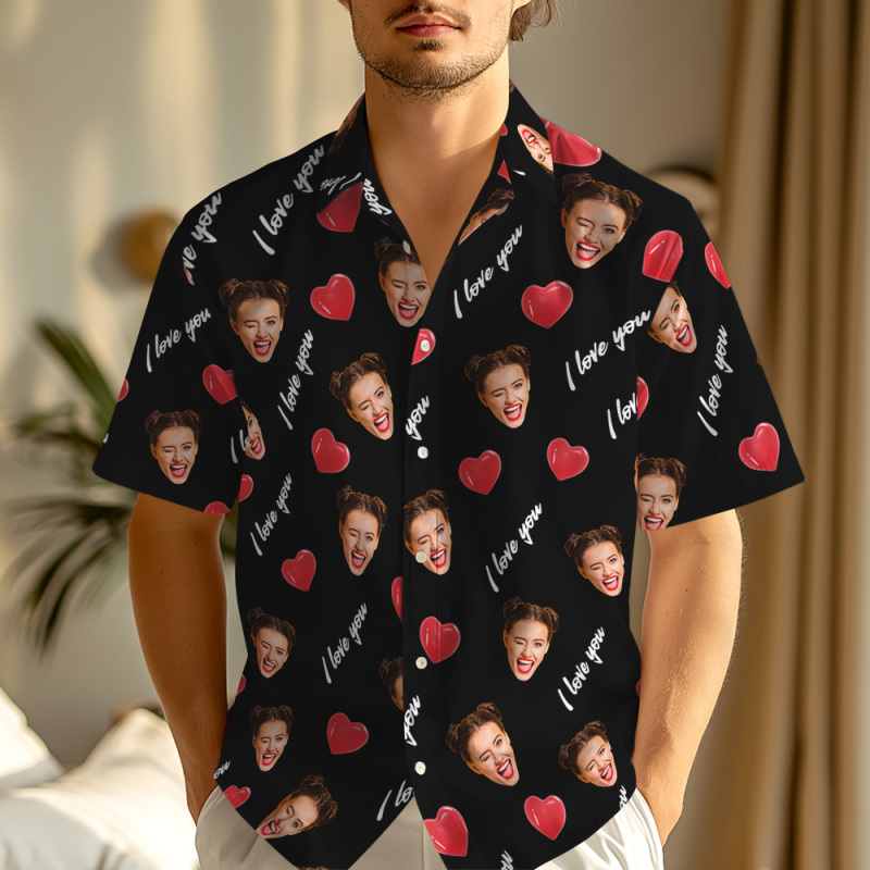 Imprimez votre visage sur une véritable chemise hawaïenne à imprimé intégral pour homme. Encouragez-vous ou montrez votre amour et votre soutien à l'être aimé avec cette idée géniale. Le meilleur cadeau personnalisé pour votre amoureux, votre famille, vos amis et pour diverses fêtes.