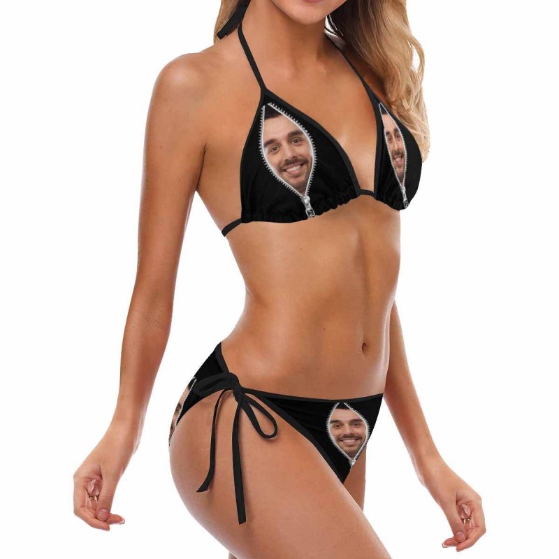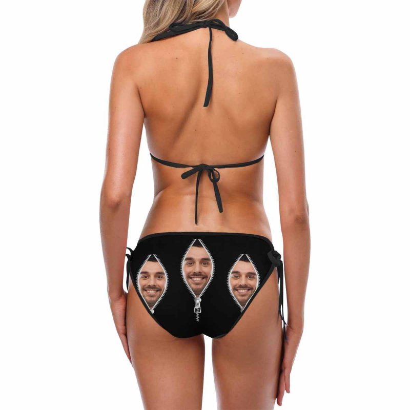 Bikini visage personnalisé Maillot de bain pour femmes avec photo segmentée - Fermeture éclair