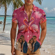 Accueil / Chemise Personnalisée Chemise Boutonnée Personnalisée Pour Couple De Flamants Roses, Style Tropical Hawaïen, Cadeaux Pour Couple