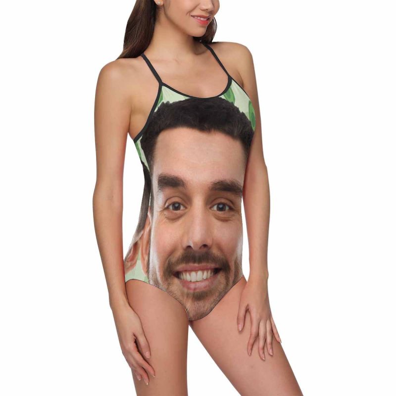 Maillot de bain visage personnalisé Maillot de bain une pièce pour femme avec photo - Fond vert