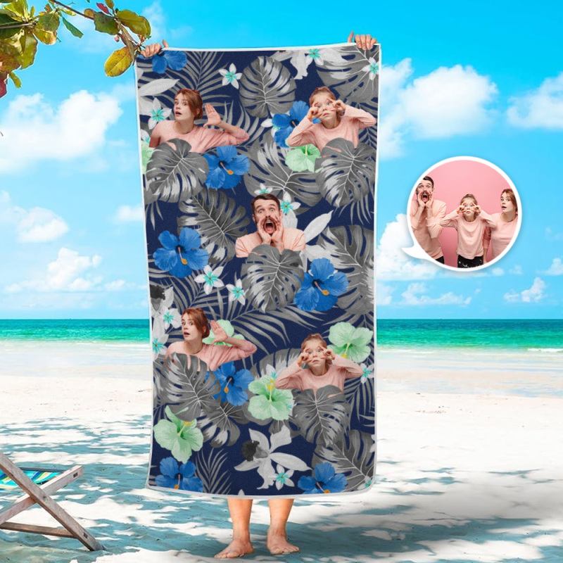 Accueil / Serviette De Plage De Style Tropical Avec Photo Humaine Personnalisée