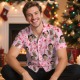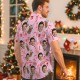 Accueil / Chemise Hawaïenne Personnalisée Avec Photo, Motif Flamant Rose Et Flocons De Neige De Noël, Ornée De Jolis Éléments Festifs