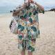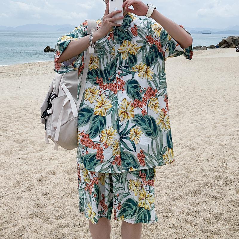 Accueil / Chemises hawaïennes Impression de feuilles et de fleurs sur fond blanc Chemises de plage Aloha pour hommes