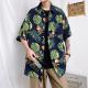 Accueil / Chemises hawaïennes Impression feuilles tropicales sur fond noir Chemises de plage Aloha pour hommes