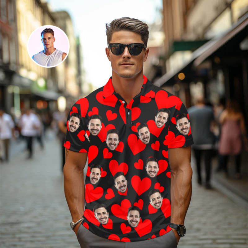 Accueil / Polo Vintage Avec Photo Personnalisée Pour Hommes, Cadeaux De Saint-valentin Avec Cœurs Rouges Personnalisés Pour Couple
