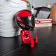 Figurine de pilote élégante avec casque de moto, inspirée de la culture de la course.