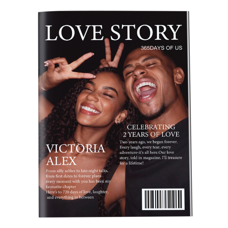 Transformez vos souvenirs préférés en votre propre Magazine personnalisé pour couple de 20 pages - un souvenir unique conçu pour célébrer votre histoire d'amour de la manière la plus créative. Chaque page est conçue avec vos photos, noms, dates importantes et doux moments, les transformant en une mise en page élégante de type magazine, à la fois ludique et touchante.
