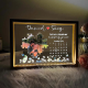 Ce cadre lumineux enchanteur est doté d'une douce lueur LED, ajoutant une ambiance douce et romantique à n'importe quelle pièce. Ce n'est pas qu'un simple objet de décoration, mais un souvenir précieux qui vous rappellera toujours, à vous et à votre bien-aimé(e), le lien qui vous unit. Idéal pour la Saint-Valentin, les anniversaires, les mariages ou comme cadeau sincère pour témoigner de l'importance que vous accordez à une personne. Laissez ce cadre lumineux illuminer votre histoire d'amour et diffuser votre amour aux quatre coins du monde.